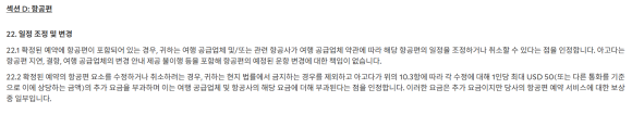 무슨 이런 말도 안되는 조항이... 출발 전날 항공편을 취소시켰다는 후기가 있어서