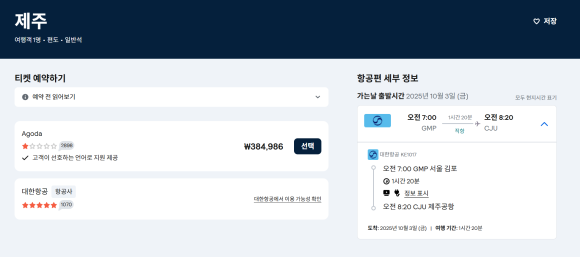 그런데 대한항공 공홈에도 없는표를 Agoda 가??