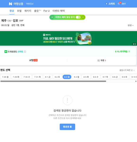 네이버 항공권에는 8.3일 매진으로 나온다.