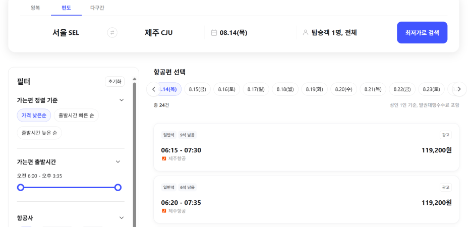 - ⚠️ 2인 이상 여행은 비추천 (좌석이 한두 개만 나오는 경우 많음)
