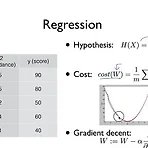 학습을 시킨다는 것. Cost를 최소화하는 W를 찾아내는 것. 경사하강법을 사용해서 , start 가 어디든지 간에, 경사가 줄어드는 쪽으로 오게 됨. 산을 타고 내려오듯이.-기울기라는 것은 cost 를 미분한 값으로 나타난다 -알파는 learning rate. 이전의 regression은 숫자를 예측하는 것 이였다면 오늘 다룰 Binary Classification은 둘 중 하나를 정해진 카테고리로 고르는 1것이다 예) 스팸메일 구분.(스팸이거나 스팸이 아니거나) 0또는1로 인코딩한다. 데이터들을 나누는 선을 그리는것이 목적이다. 리니어 리그레션에서는 H(x)=Wx+b 를 0~1 사이의 값을로 압축을 시켜주는 함수가 필요하였고 그것이 Sigmoid 함수이다. Logistic function 이라고도 함..